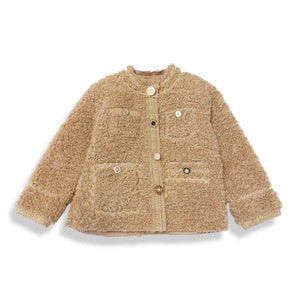This teddy-bear-like coat is the only addition you'll need in the wardrobe! The soft fur is light enough for comfortability yet thick enough to keep your little ones warm this winter.