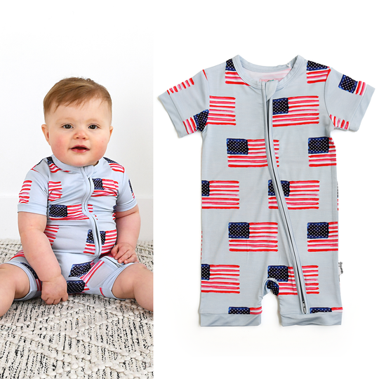 George Blue Flag Shorty Zip Bamboo Baby 4th of July